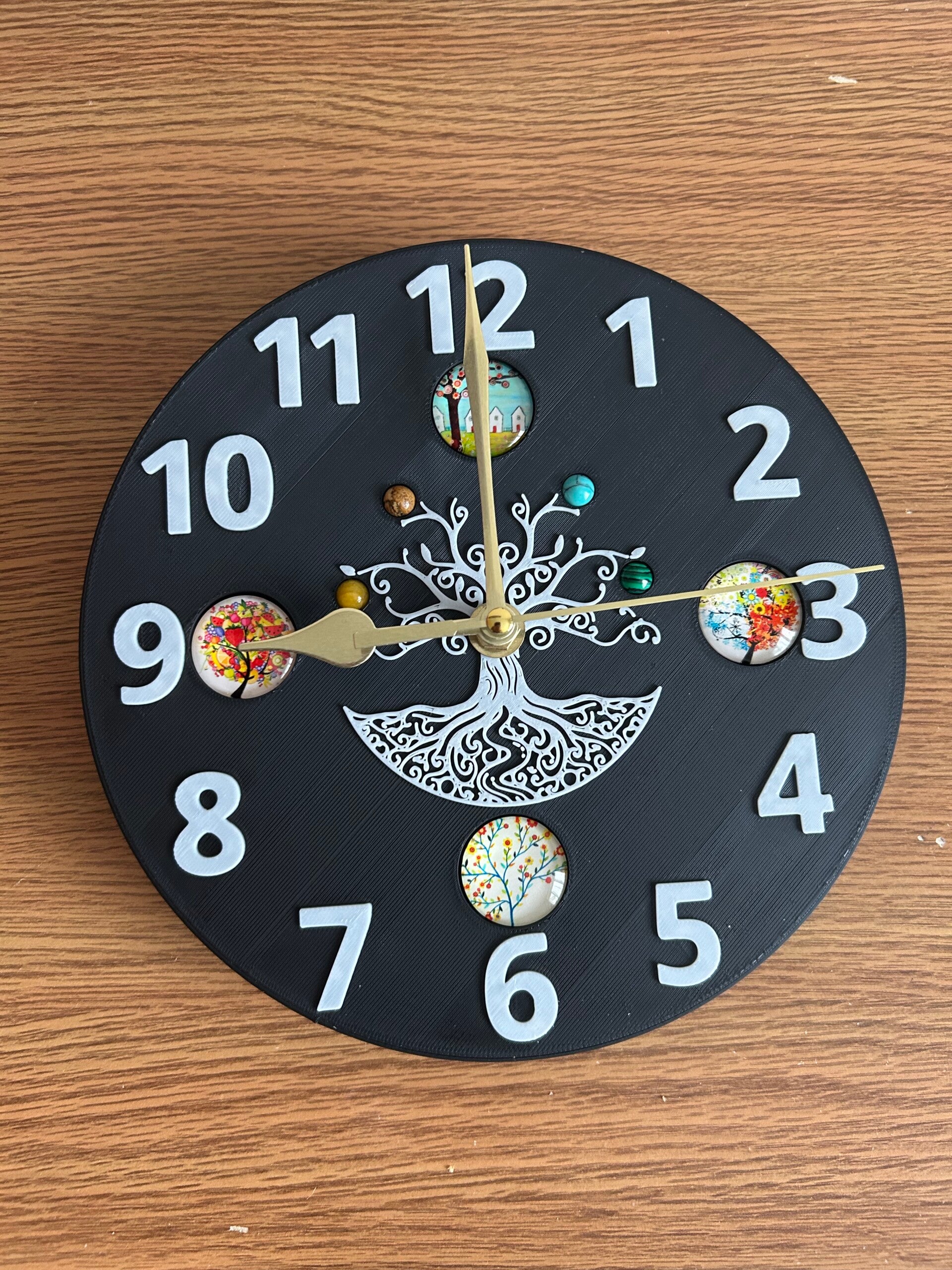 This clock is a perfect blend of modern 3D printing technology and classic, meaningful imagery. It makes a wonderful statement piece for a living room, office, or bedroom, and is a thoughtful gift for housewarmings, birthdays, or for anyone who loves nature and symbolic decor. dimensions are 200mm Dia, and 40mm thick