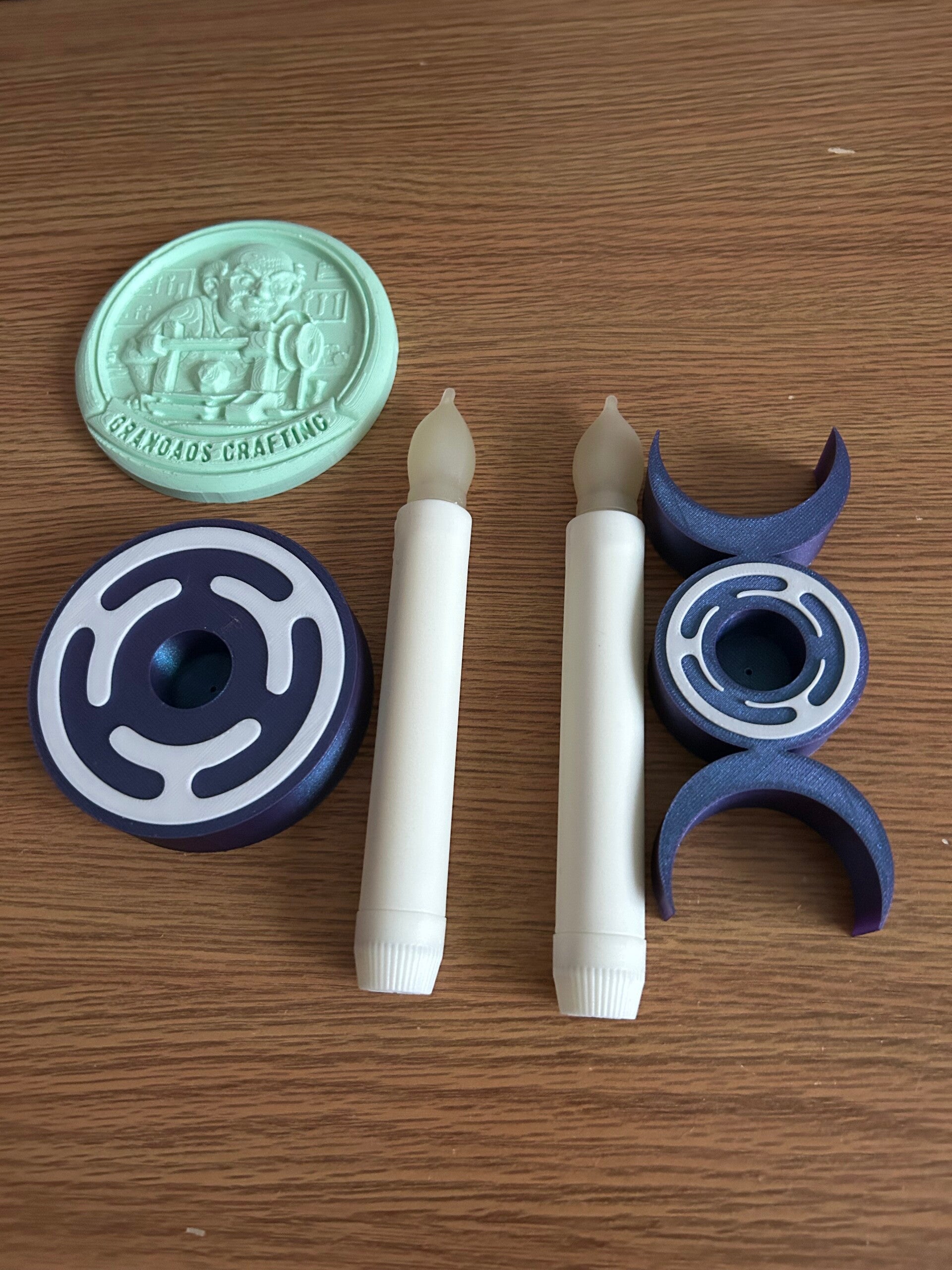 2 x Triple Moon Symbol Candle Stands (Blue/Purple)